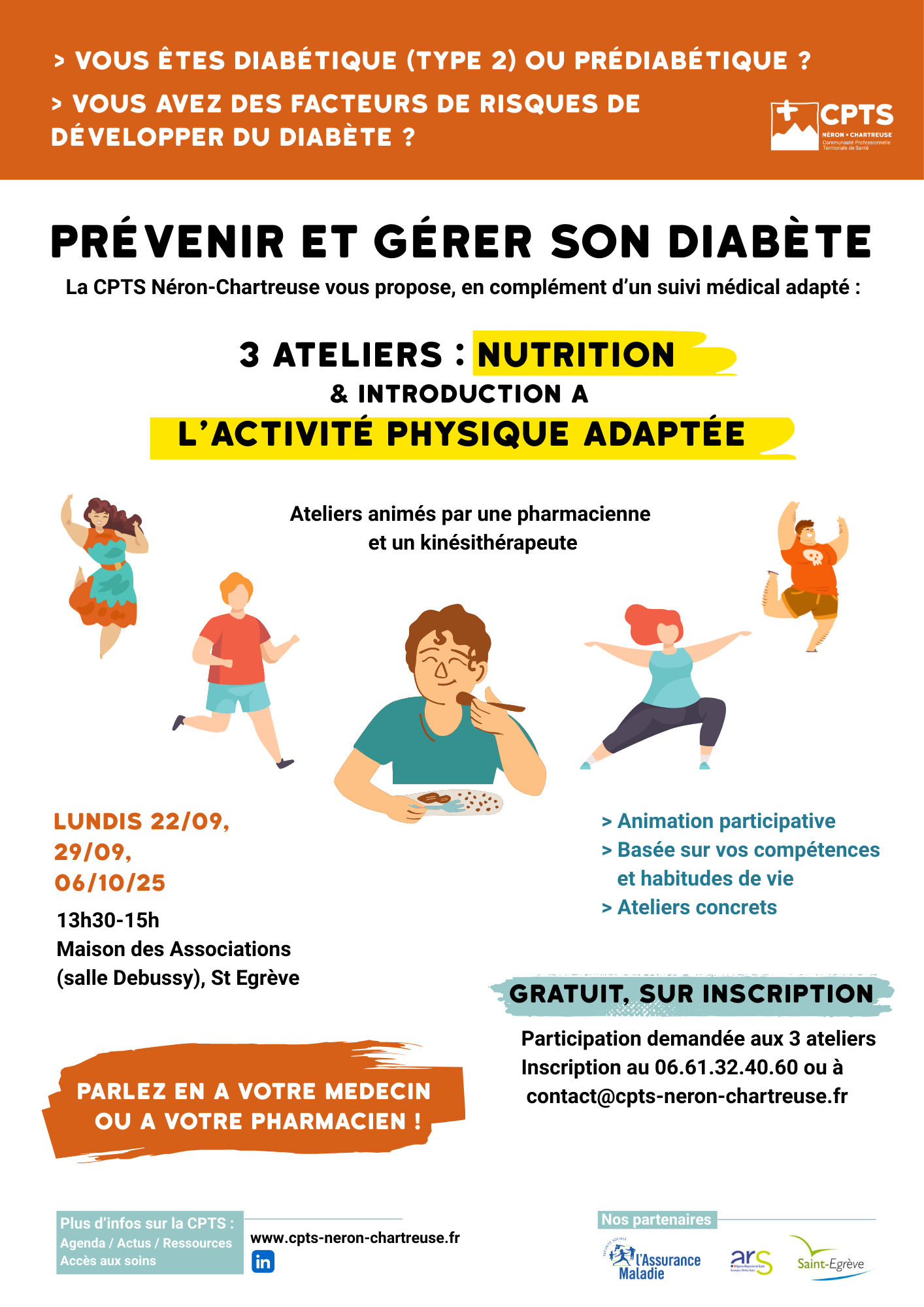 La CPTS Néron-Chartreuse vous propose, en complément d’un suivi médical adapté 3 ateliers : nutrition et introduction à l’activité physique adaptée